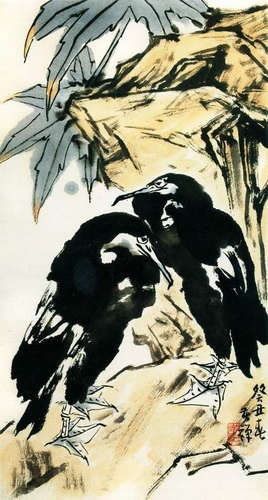 苦禅大师的画,源于自然,融乎心田,流诸笔端,复归于自然的“天籁自鸣”之境界。他主张“书至画为高度,画至书为极则”,因此,他的画笔力雄健,气势浑厚,以大手笔、大写意、大写情而著称,在中国写意花鸟画方面有突出的贡献。