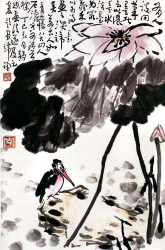 苦禅大师的画,源于自然,融乎心田,流诸笔端,复归于自然的“天籁自鸣”之境界。他主张“书至画为高度,画至书为极则”,因此,他的画笔力雄健,气势浑厚,以大手笔、大写意、大写情而著称,在中国写意花鸟画方面有突出的贡献。