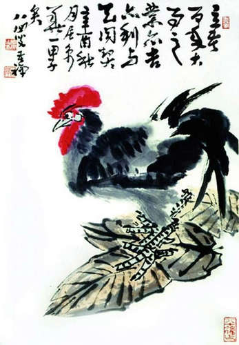 苦禅大师的画,源于自然,融乎心田,流诸笔端,复归于自然的“天籁自鸣”之境界。他主张“书至画为高度,画至书为极则”,因此,他的画笔力雄健,气势浑厚,以大手笔、大写意、大写情而著称,在中国写意花鸟画方面有突出的贡献。