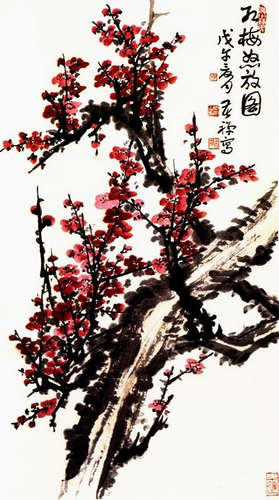 苦禅大师的画,源于自然,融乎心田,流诸笔端,复归于自然的“天籁自鸣”之境界。他主张“书至画为高度,画至书为极则”,因此,他的画笔力雄健,气势浑厚,以大手笔、大写意、大写情而著称,在中国写意花鸟画方面有突出的贡献。