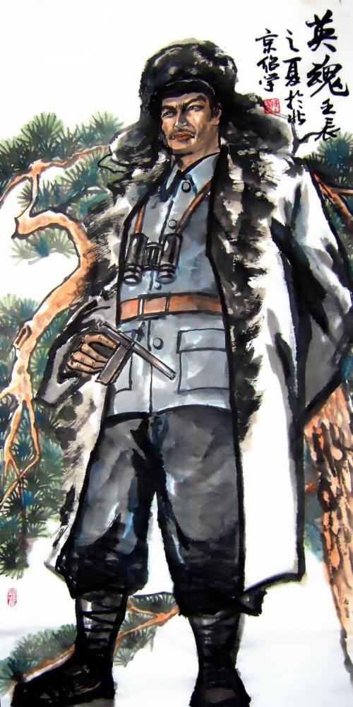 作品说明: 陈绍学国画《英魂杨靖宇》