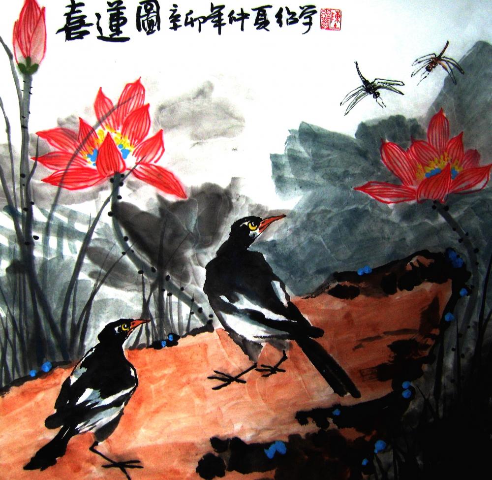 作品说明: 陈绍学国画荷花《喜莲图》