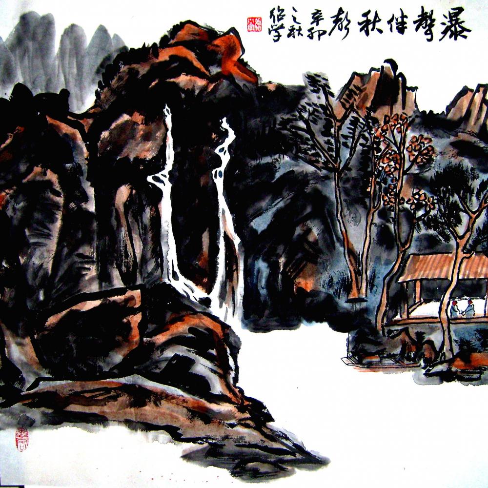 作品说明: 陈绍学国画《瀑声伴秋声》