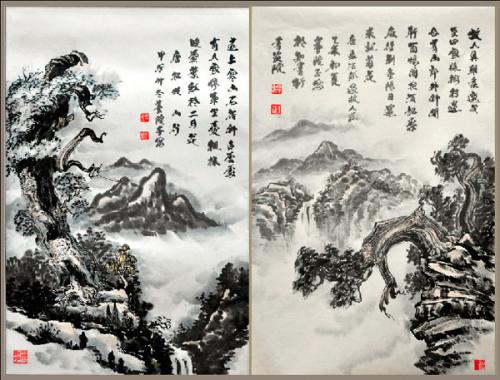 正如董院子老师介绍,他之所以专攻古柏山水系列,是被古柏的精神深深吸引。千百年的古松柏,在中华民族浓厚的人文内涵中,吸天地之灵气,涵万古之文章,历中华民族世代兴衰,以万古长青之气概,象征着中华民族永远根深叶茂、生生不息屹立于世界民族之林的宏大气象。董院子坚贞不喻的文人情怀,使他笔下的苍松古柏,繁荣茂密、遮天蔽日、如虬龙蟠旋,充分传达古松柏历尽风霜雨雪而坚贞不屈、枝繁叶茂的民族灵魂。董院子从心里到笔端,赋予松柏更加深刻的文化内涵,也逐渐形成了墨色淋漓,笔墨灵动、飘逸秀雅、沧桑浑厚的艺术风格。