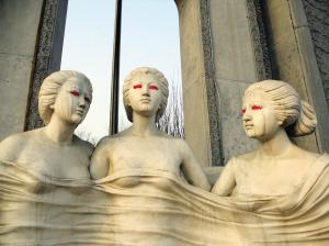 昨天,记者看到,雕塑中三位少女双眼全部被鲜红的染料涂满。附近居民王女士告诉记者,就在春节期间,雕塑遭到涂鸦。随后,记者将该情况反映给红桥区市容委,工作人员表示,清理工作只能是对其进行打磨,对雕塑有一定损伤,还望市民自觉爱护公共设施。