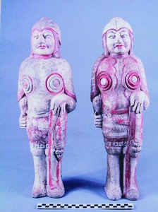 (记者李建斌、邢兆远)日前,山西太原开化墓群考古发掘取得重大收获,考古队在开化墓群发现了大量汉、北齐、明清时期墓葬,其中,发掘出的一处汉代砖室墓葬规模之宏大、结构之复杂,在山西实属罕见。在3座北齐墓中出土了135件色泽鲜艳的陶俑,尤其是在北齐楚州刺使赵信夫妇合葬墓中出土的一组镇墓武士釉彩陶俑,高50厘米,全身间以红白彩绘,上戴头盔,持戟挚盾,体态健硕,眉目和善,足可与娄睿墓武士俑相媲美。