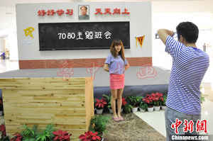 近日,昆明一商场内为70、80后的成年人搭建了一间仿真小学教室,勾起不少“大孩子”们脑海里关于童年时的点点滴滴温存记忆。