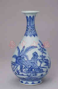 此瓶造型线条优美流畅, 胎质纯净细腻,纹饰清晰生动。画面一改元青花繁缛的装饰风格,构图疏朗有致,青花色泽浓艳亮丽,深浅不一,富于层次感和立体感。画面中的黑色斑点似水墨画中晕散的效果,为永乐青花的显著特征,这种自然形成的色泽特点极难模仿,为后世仿品所不及。清康熙、雍正、乾隆时期皆有仿永乐青花竹石芭蕉纹玉壶春瓶,但器物造型不及永乐器柔美秀丽而略显臃肿笨重,画面中的黑斑不是天然烧成,系人为重笔点染而成,与原物相差甚远。