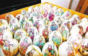 今年74岁的傅品金是南川区文化馆退休人员,老人介绍,他以前学过美术,退休后,近年来迷恋上了蛋画,即在蛋壳上画画。老人家里墙壁上挂着一张两米长的《水浒》英雄谱,《水浒》108将全在上面。