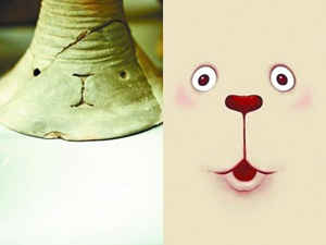 画外音:6000年前陶豆的圈足上雕着圆眼三瓣嘴,神似动画“越狱兔”,莫非祖先在此?(一点)