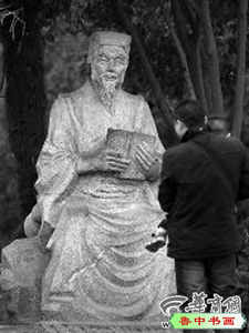 昨日,游人从雁塔北广场药王孙思邈雕像前走过。孙思邈手中的线装书在唐朝时并不存在 本报记者 闫文青 摄