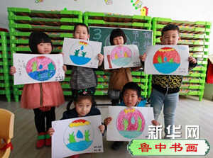 2014年3月22日 ,河北省隆化县爱迪幼儿园开展以“节约用水、从我做起”为主题的水资源保护和节水宣传活动,通过绘画、手工小制作、图片展览、现场演示等形式,培养小朋友从小节约用水的好习惯。新华社发(杨阔 摄)