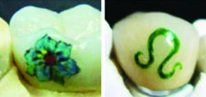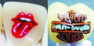 过去10年来,遵照患者意愿,美国康涅狄格州埃灵顿牙科协会的牙医史蒂文·兰德曼在患者牙冠上文过乐队动画片《辛普森一家》中父亲霍默·辛普森的形象、“滚石”乐队的大舌头标志、奥克兰突击者队的队徽、一颗被爱神之箭射中的心脏、黑猫、椰子树、花朵、爱犬等等。
