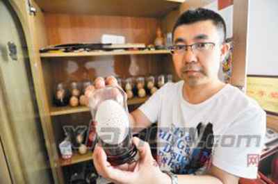 在李世栋的家里有一个专门的房间,里面两个柜子摆放着他的蛋雕作品。美丽的风景、长胡子的老者、12生肖等,一幅幅栩栩如生的作品,居然呈现在厚度仅0.2毫米的鸡蛋壳上。