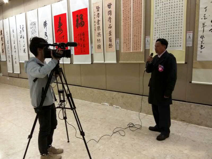 来自广东中山的著名书法家郑伟光先生,作为本次活动的特邀参展艺术家,展出了6幅极具代表性的精品书作,作品内容丰富,引人入胜,风格多变又不失魅力,可见其功夫颇深。为了共同庆祝香港回归二十周年,同时能够一睹郑伟光先生的书艺风采,各地友人纷纷前来祝贺。展览现场,郑伟光先生崇德尚艺的人格魅力更好地推进了本次活动的圆满举行。 展览现场: